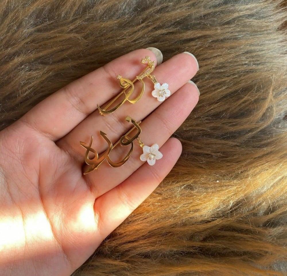 بروش الاسم مع الكرستال باول حرف والورده الانيقه