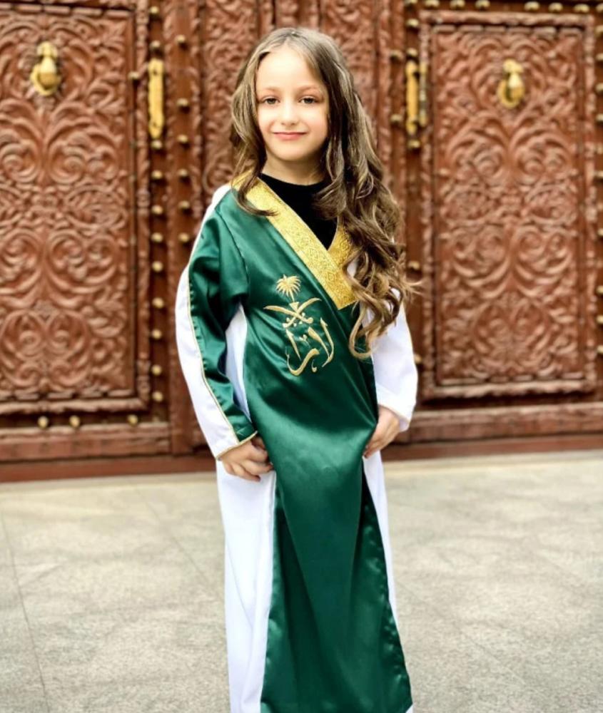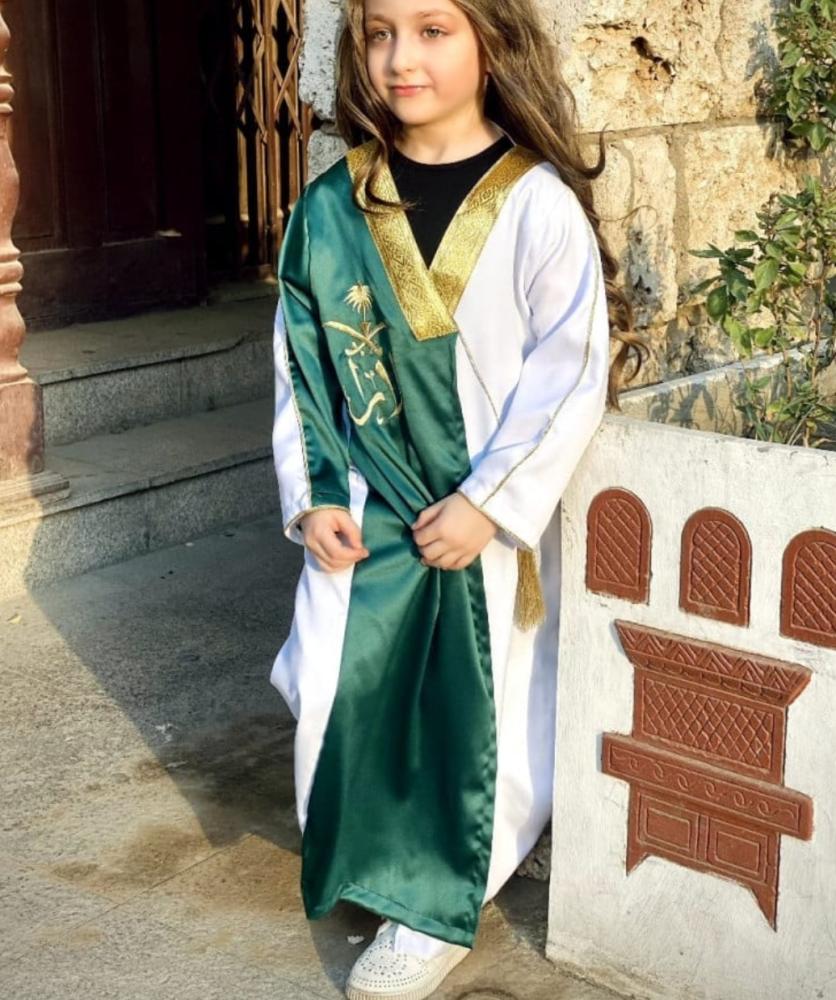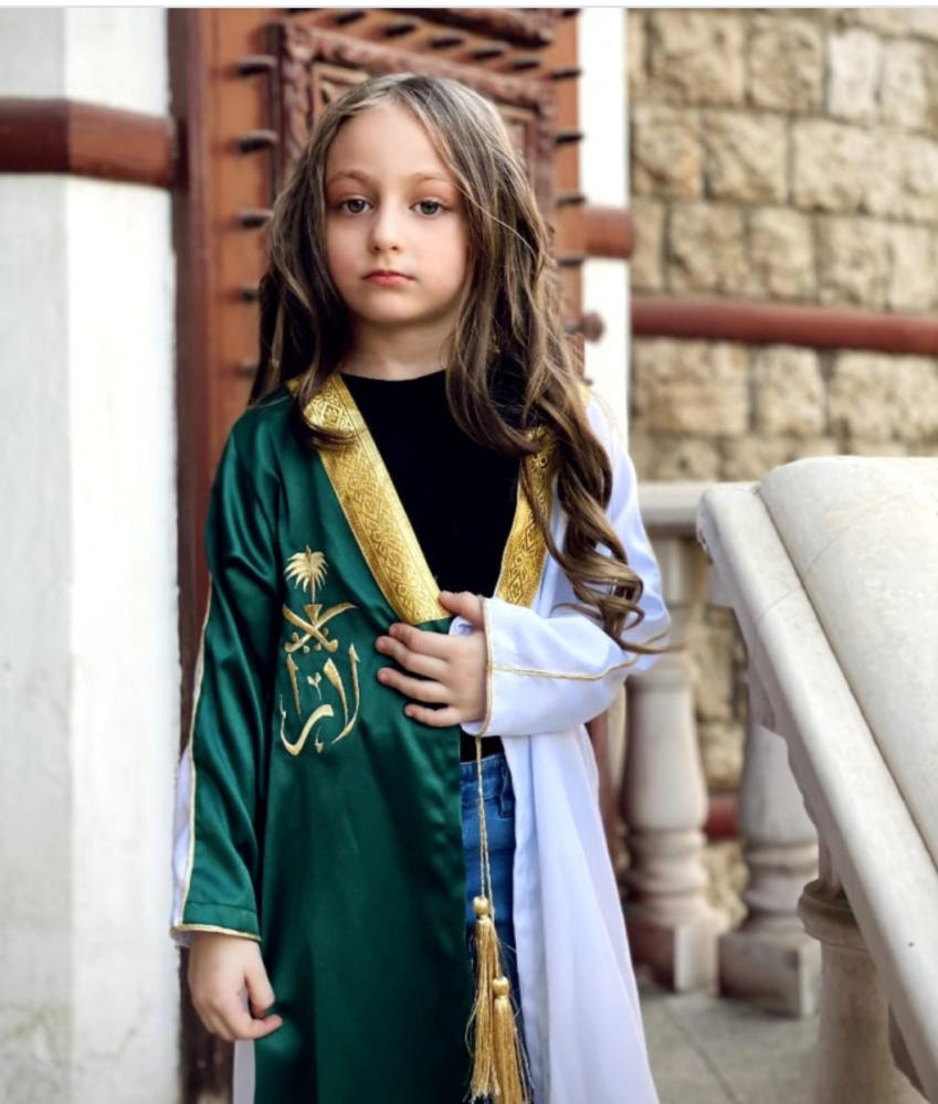 طفلتك اجمل مع بشت اليوم الوطني مع تطريز اسمها حسب طلبك