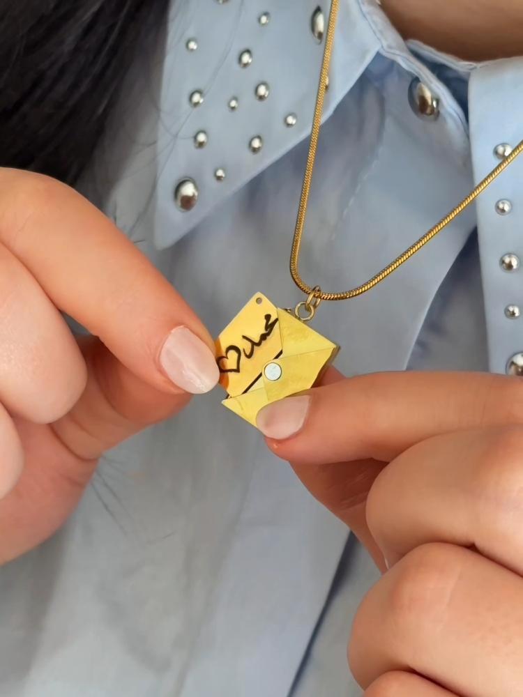 اهدي من تحب قطعه مميزه سلسال الظرف انيق و جميل ويحمل الاسم او العباره حسب الطلب مناسب لكِ أو كهدية رائعة يكتب عليها من داخل القلادة مطلي ذهب وفضة